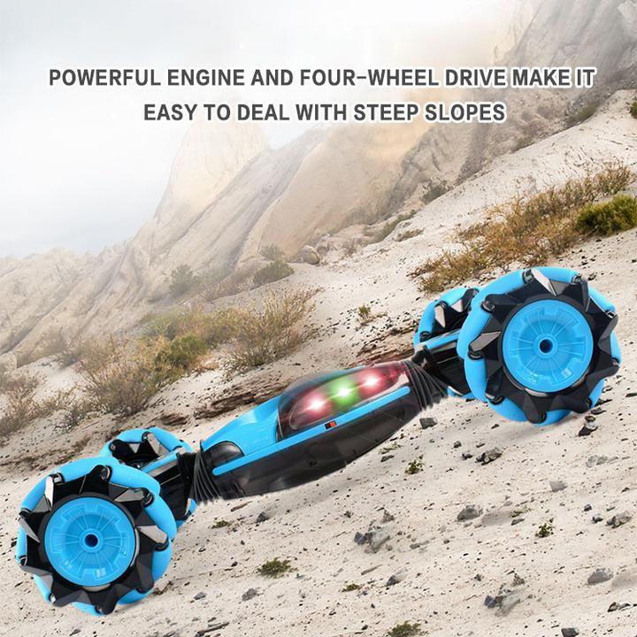 Front, rear, left/right, flip and high chassis can be freely combined during playback. 4WD driving provides better stability and off-road performance. This RC stunt car is very sturdy.