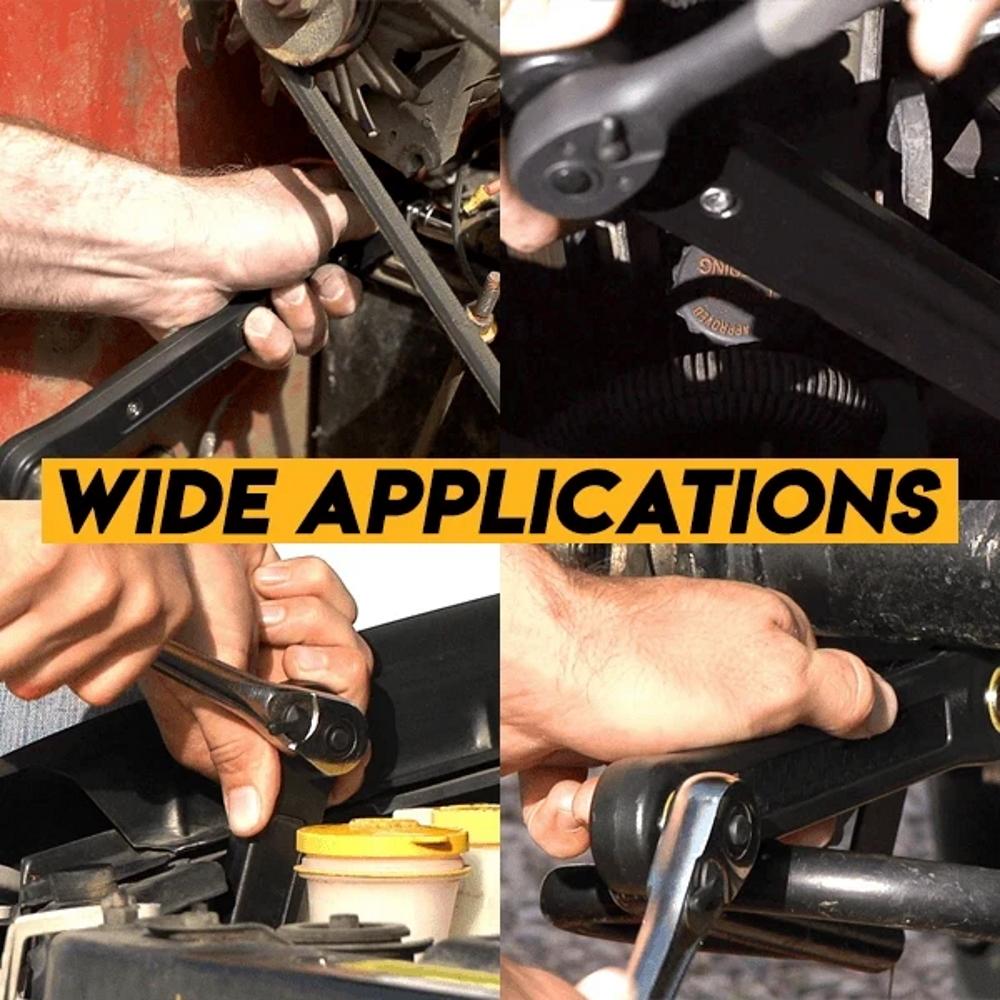 - Reach Any Spot - Allows you to reach hard-to-access nuts and bolts in tight spots that didn't work before with full swing to increase efficiency. Turn nuts and bolts with ZERO degrees of arc.