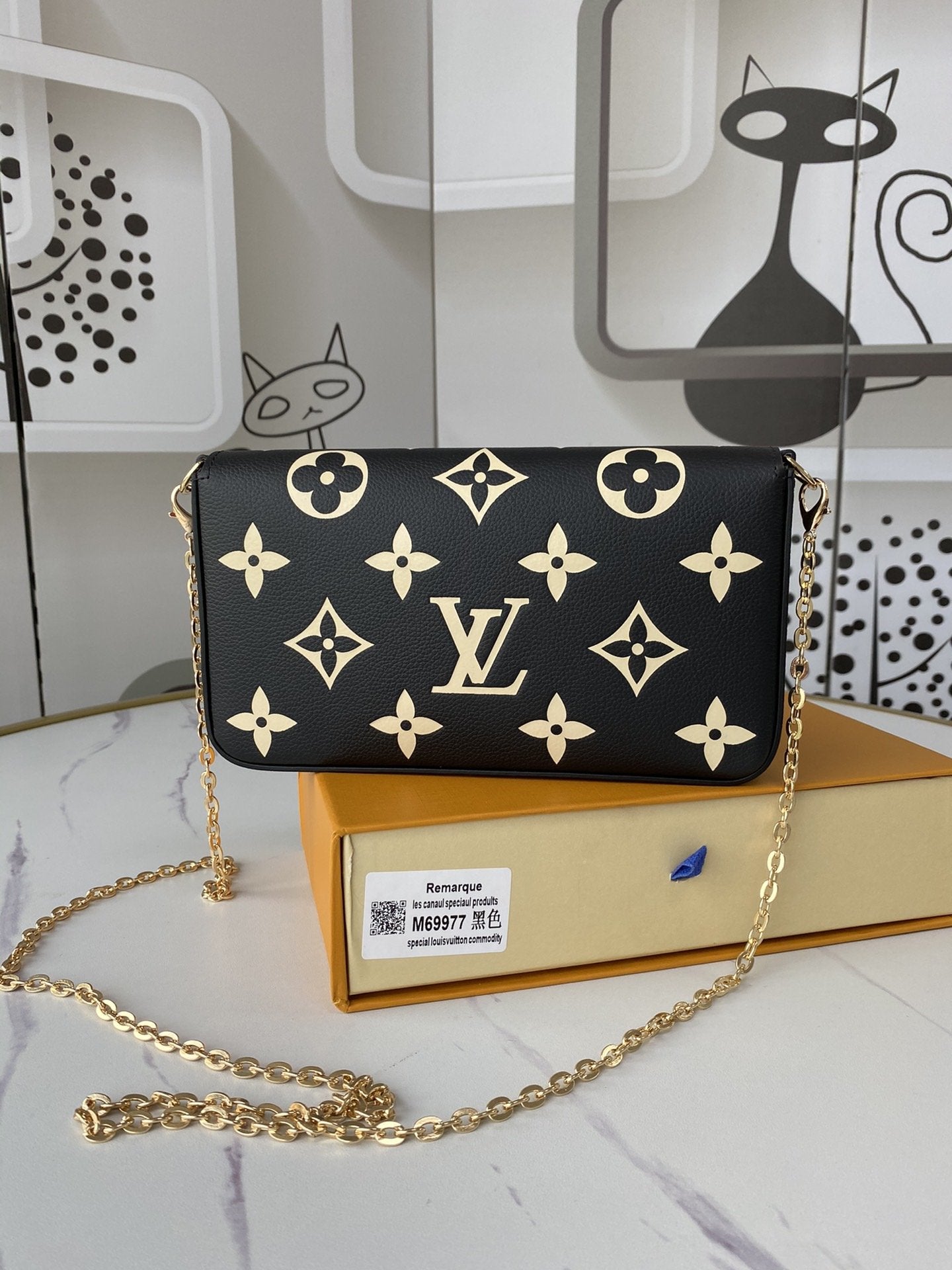このポシェットフェリシーチェーンバッグは、モノグラムプリントのモノグラムエンプレインテレザーで、封筒のような構成には取り外し可能な内ポケットが付いています。チェーンを締めて、クラッチとショルダーバッグの変換を完了します。寸法:21.0 x 12.0 x 3.0 cm