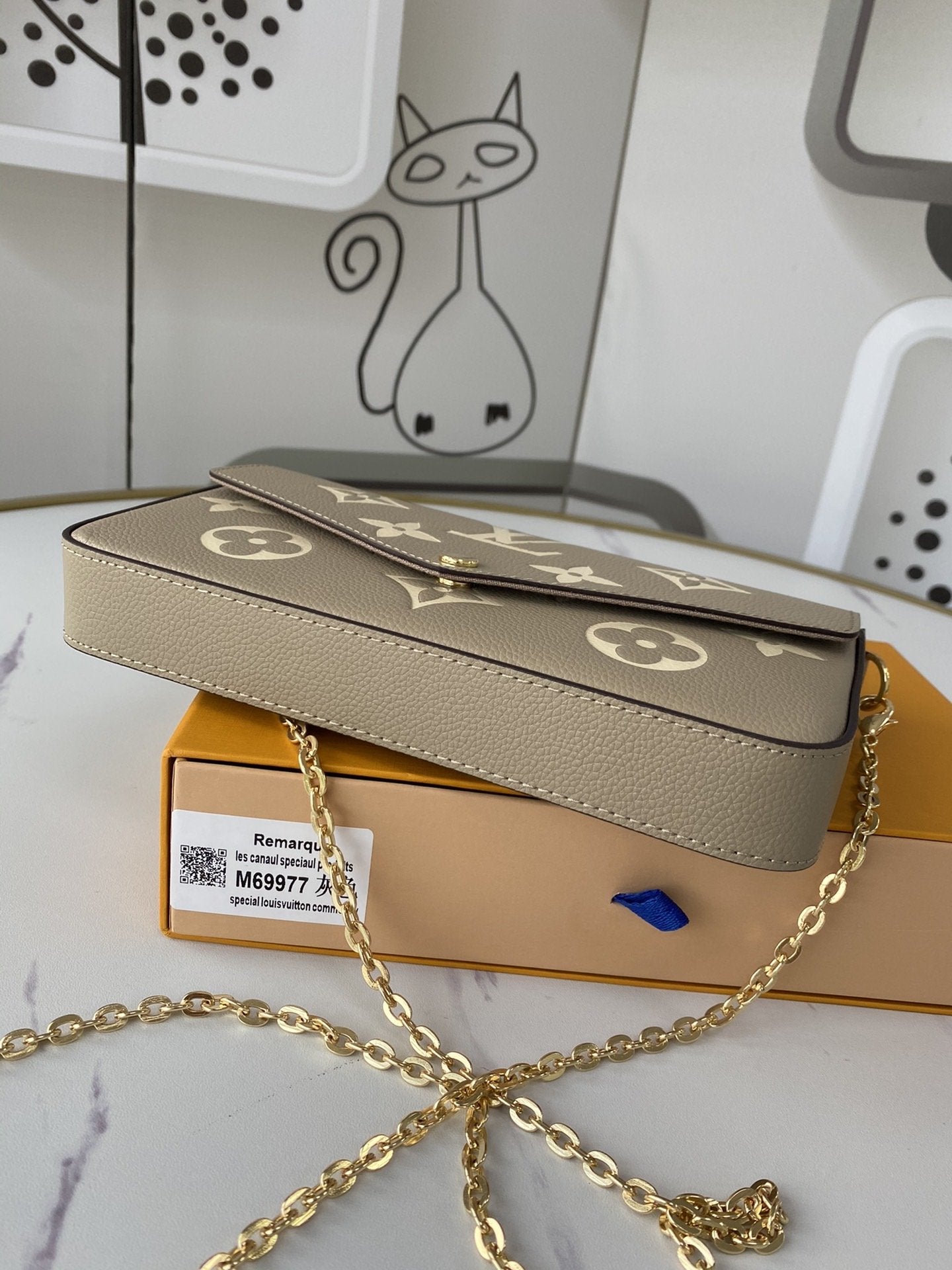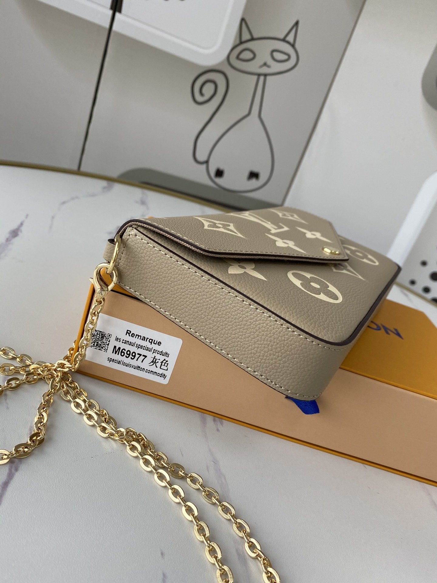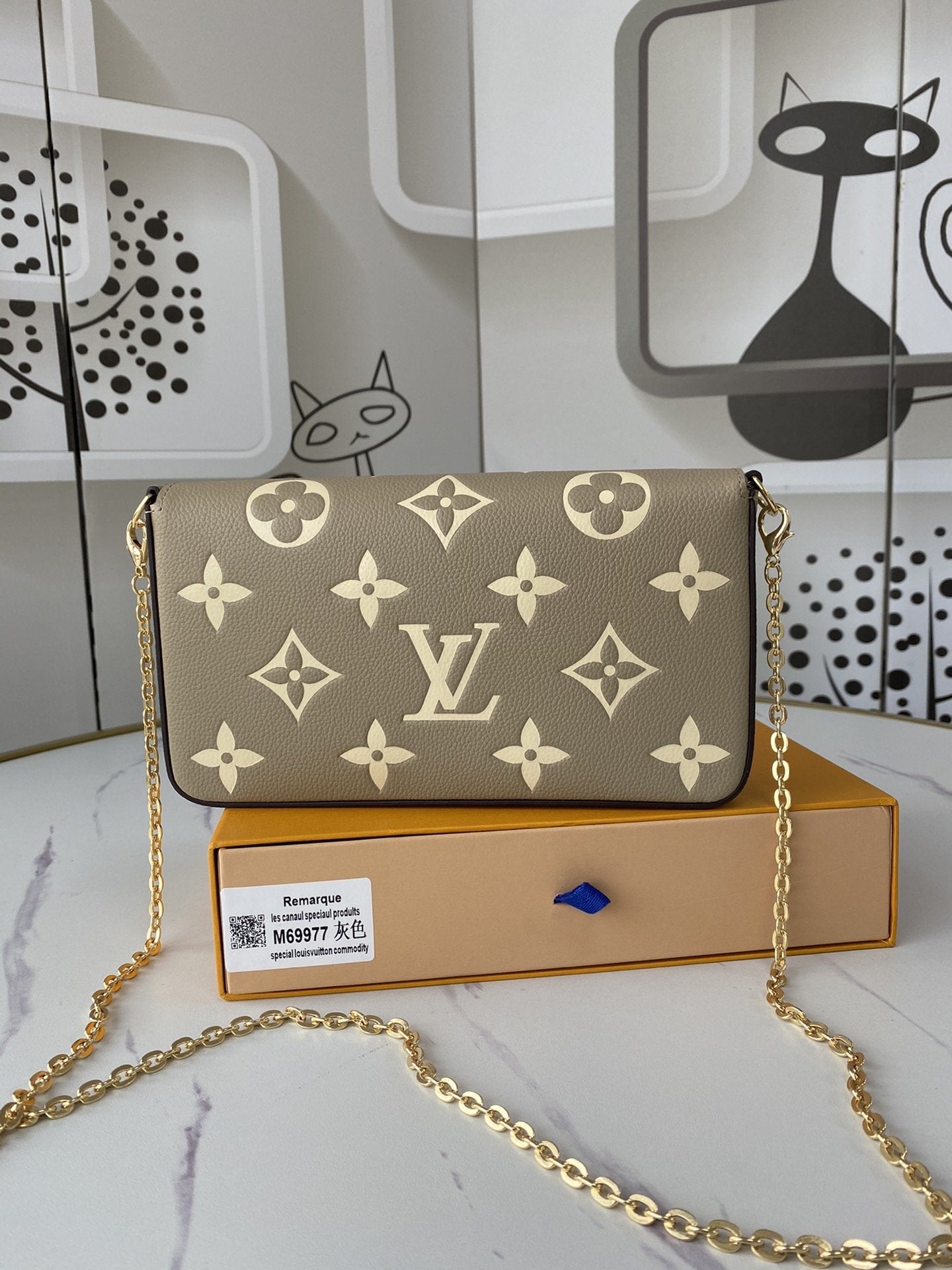 このポシェットフェリシーチェーンバッグは、モノグラムプリントのモノグラムエンプレインテレザーで、封筒のような構成には取り外し可能な内ポケットが付いています。チェーンを締めて、クラッチとショルダーバッグの変換を完了します。寸法:21.0 x 12.0 x 3.0 cm